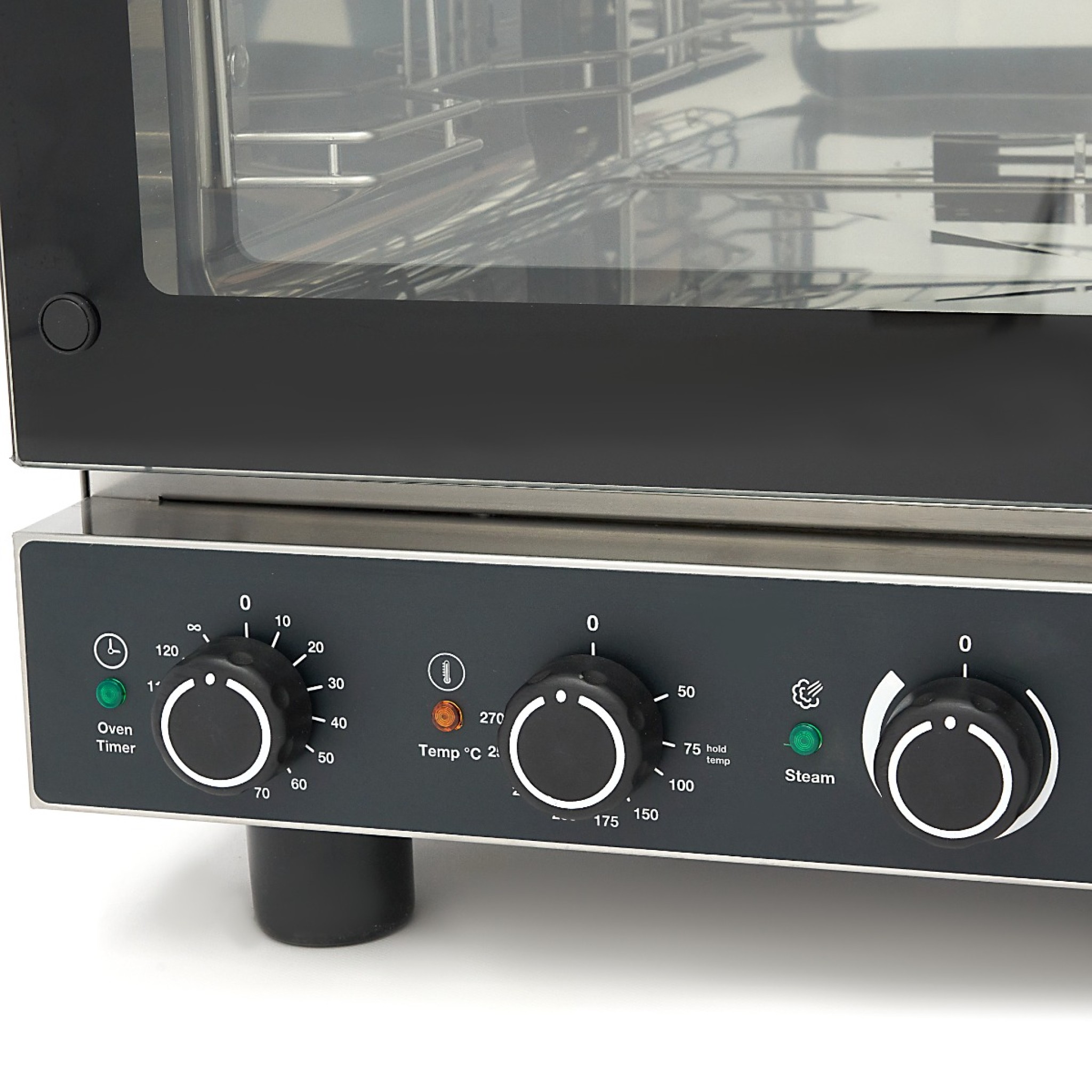 - Gebruiksvriendelijke analoge bediening voor stoom, temperatuur en timer