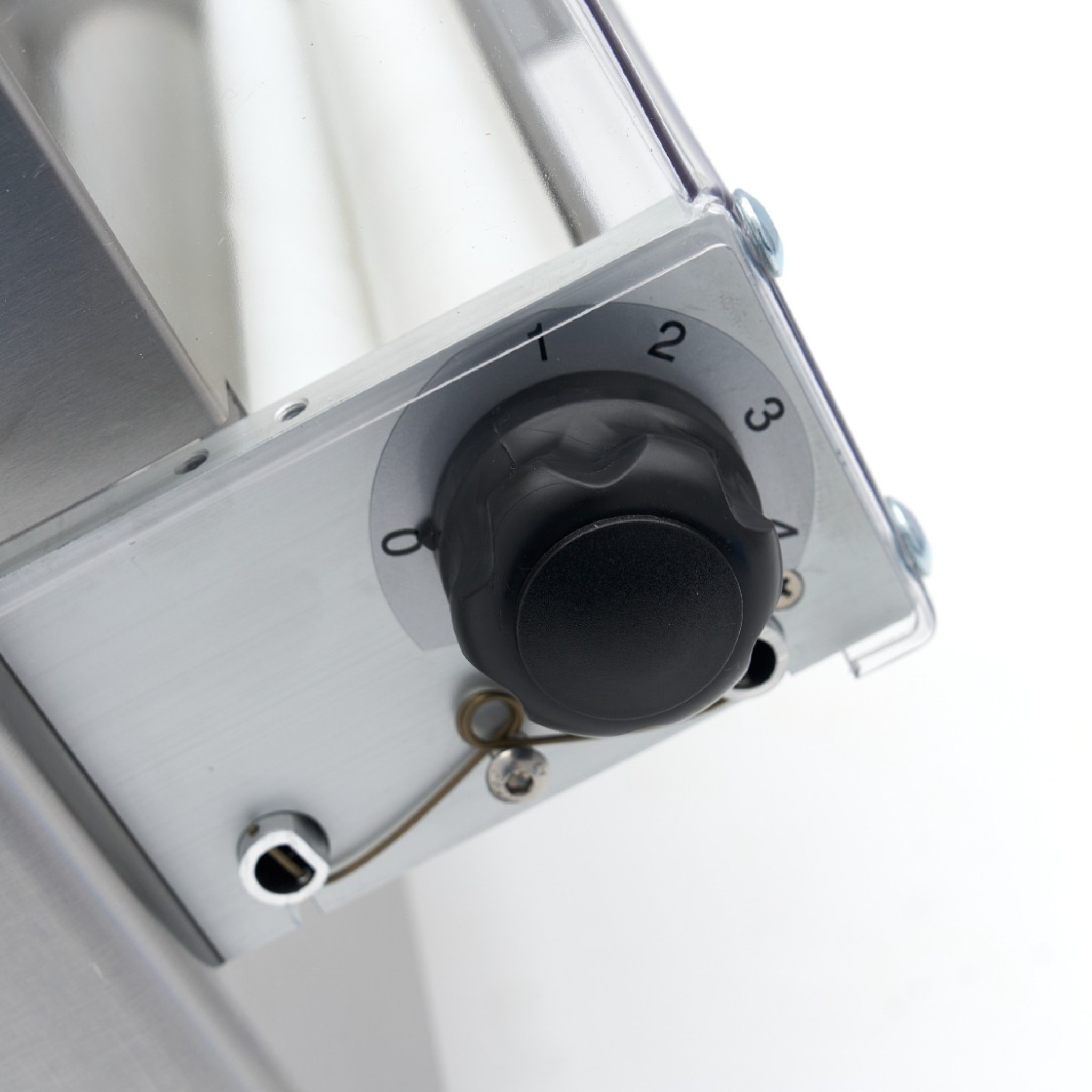 Met de draaiknop aan de zijkant stel je eenvoudig de gewenste deegdikte in tussen 0 en 4 mm.