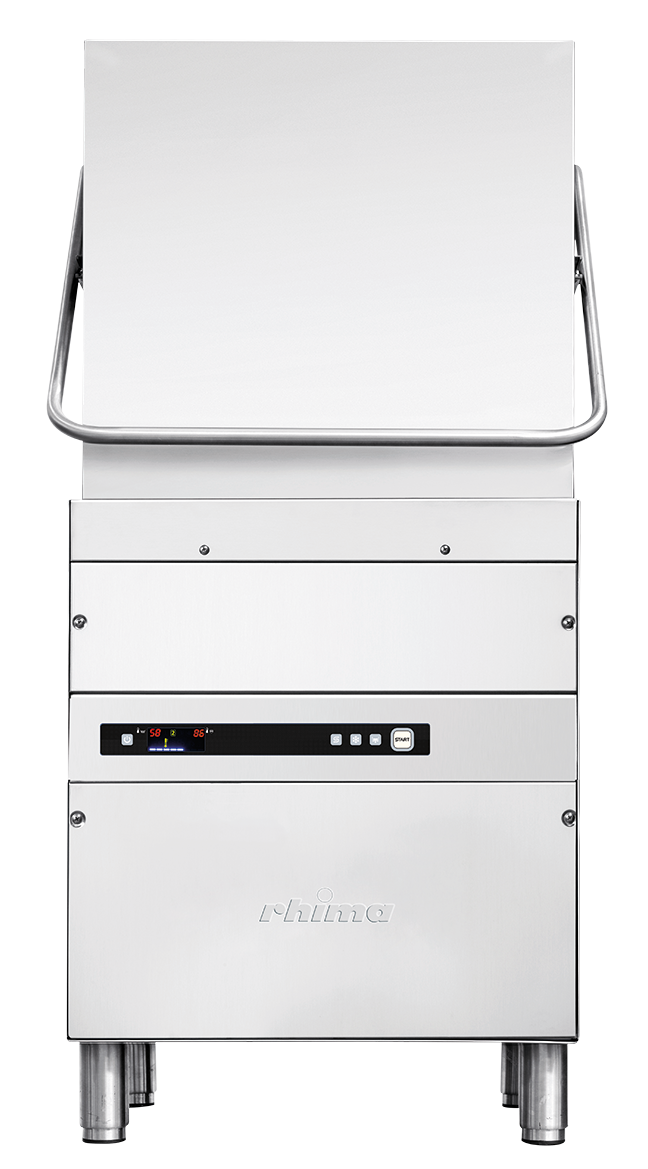 De RHIMA DR 60T is een echte professionele doorschuifvaatwasmachine geheel vervaardigd uit AISI 304-18/10 chroomnikkel roestvrijstaal. Elke wasbeurt voldoet aan de HACCP eisen omdat de machine uitgerust is met een thermochrone besturing: hierdoor wordt gegarandeerd dat onder alle omstandigheden de temperatuur van het naspoelwater minimaal 85°C bedraagt. Elke wasbeurt heeft dus een hygiënisch zuiver eindresultaat.