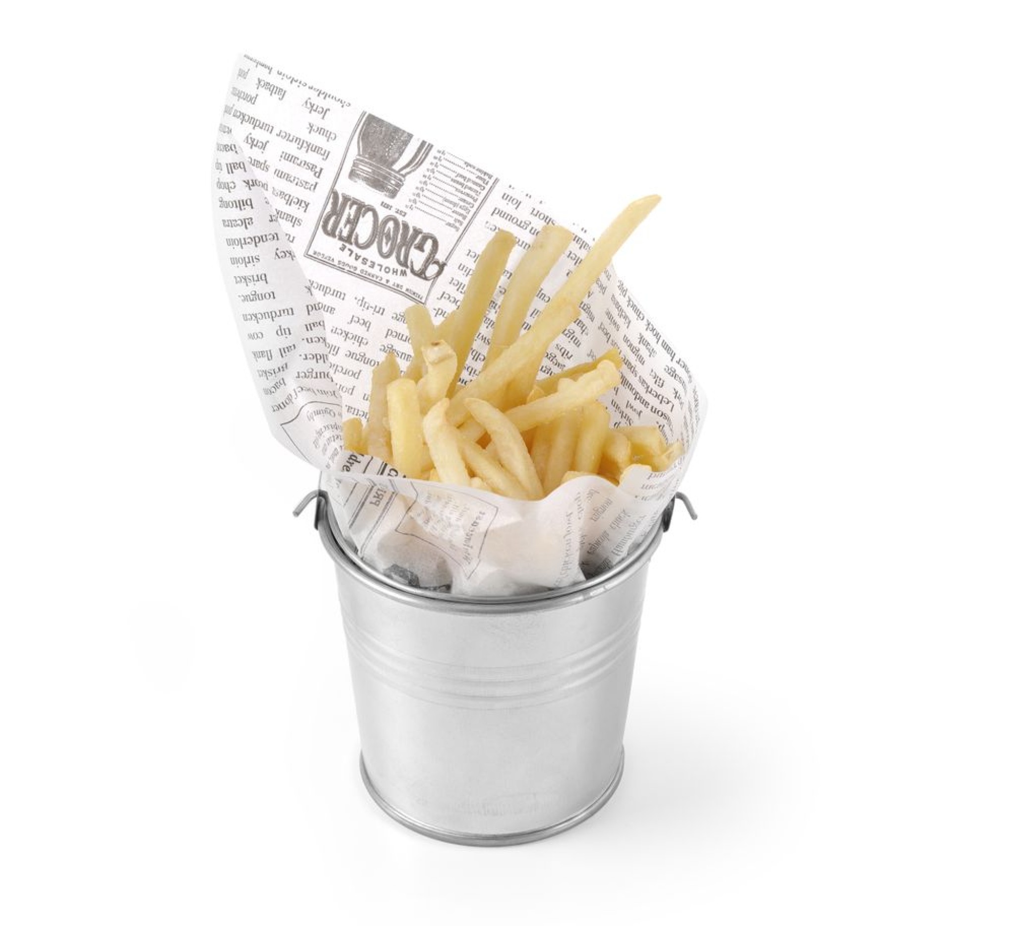 Gegalvaniseerd staal is niet bedoeld voor contact met levensmiddelen, gebruik onze vetvrije papieren vellen wanneer u voedsel wenst te serveren in de emmers.