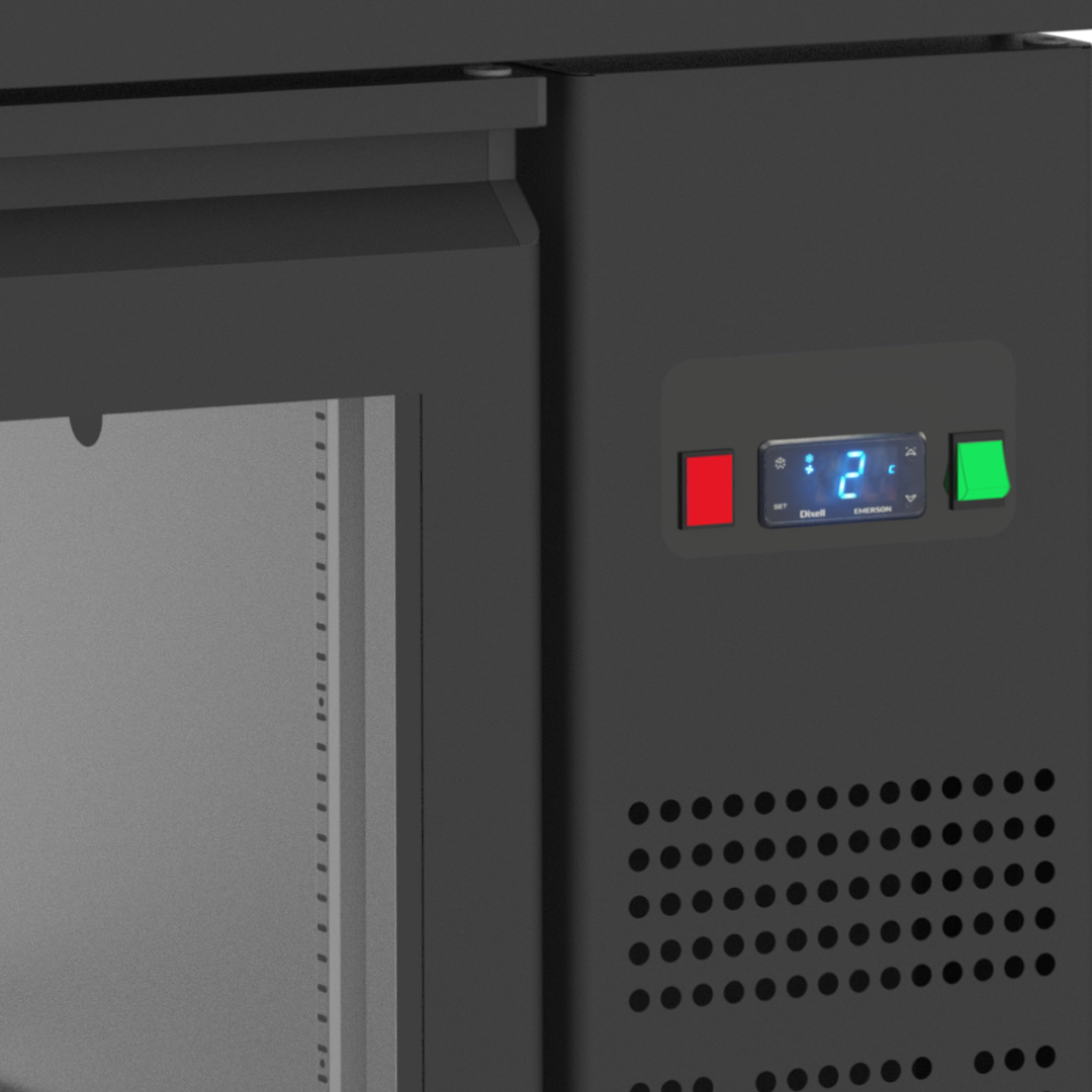 Doorgeefbarkast met 4 glazen deuren aan de voorzijde. Achteraan bevinden zich volle deuren. Een doorgeefbarkast, een onmisbare koeler voor restaurants en cafés, is beschikbaar in diverse groottes en capaciteiten. Er zijn varianten met dichte deuren en glasdeuren. Solide deuren zijn ideaal voor gebruik onder de bar, terwijl glasdeuren populair zijn in cafés. Kenmerken: Geventileerde koeling voor snelle pull-down en gelijkmatige temperatuur • Zwarte buitenkant • Instelbare planken