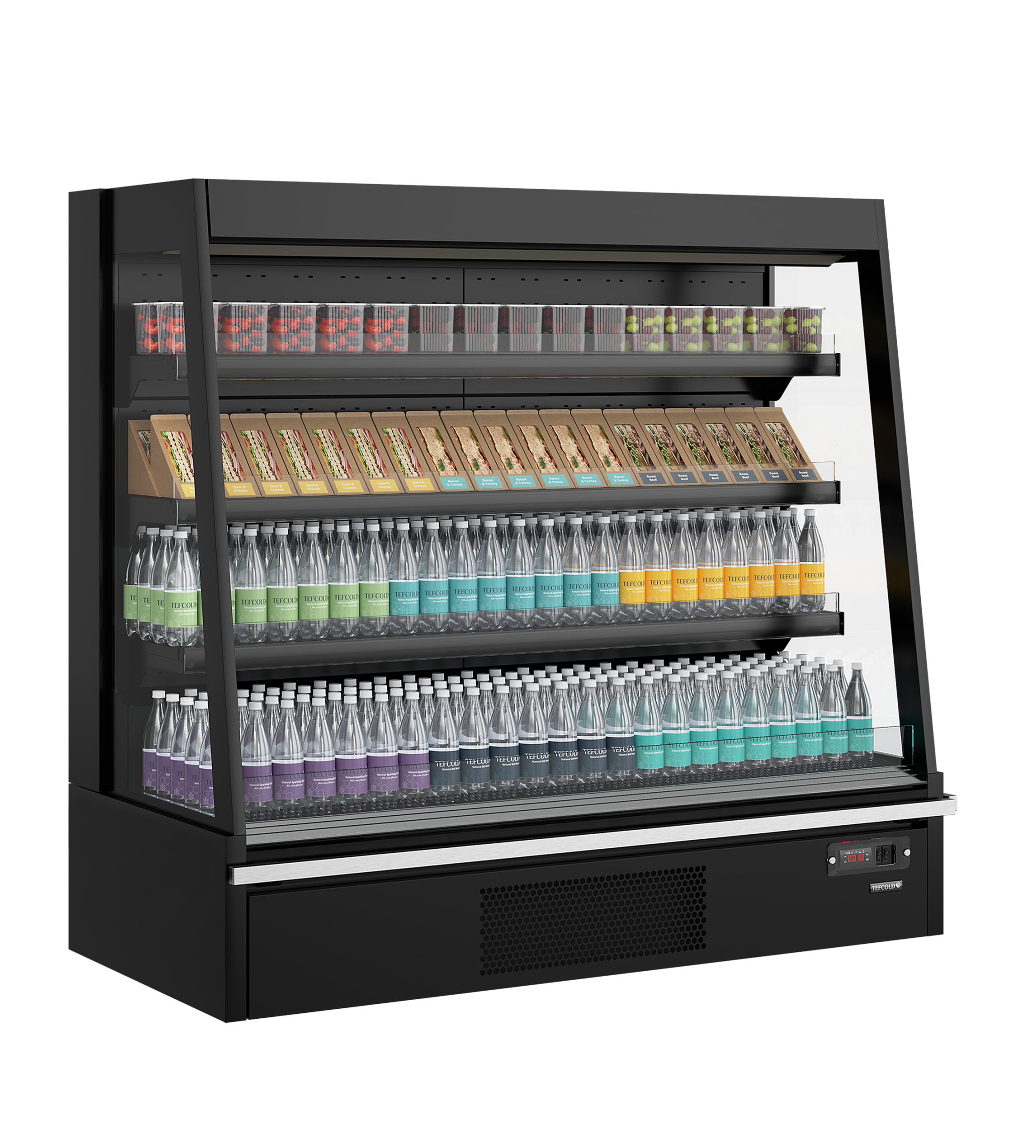 Lage multideckkoeler - kopunit De Galaxy+ LOW-lijn van lage multideck-koelers met open voorzijde is ideaal om impulsaankopen te stimuleren. De lage hoogte van de units maakt eilandinstallaties mogelijk zonder het zicht van de klant te belemmeren. Het is een ruime kast compleet met verstelbare schappen en interne LED-verlichting voor een optimale productpresentatie. Kenmerken: Uitstekende productpresentatie • Ideaal voor impulsaankopen • Instelbare planken met kantelfunctie • Standaard etiket-/prijsstrip en opstaand front van acryl • Horizontale binnenverlichting • Geventileerde koeling • Nachtblindering / gordijn • Multiplexkit als accessoire • Massieve 40 mm kopwanden met spiegelende binnenkant