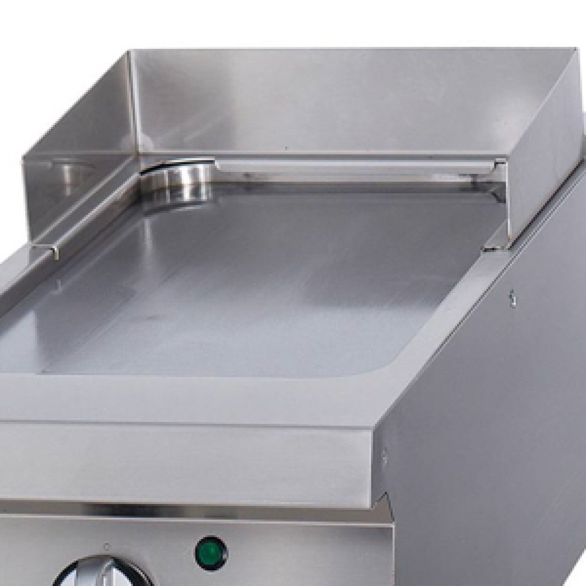 Dankzij de handige uitlekbak van 1,5 liter en een spatrand die oliespetters voorkomt is het veilig werken met deze grillplaat. Temperaturen kunnen worden ingesteld tussen de 50 en 300 graden Celsius met de veiligheidsthermostaat. Werk je met een bakwand of baklijn in de keuken, dan past deze grillplaat daar prima in.