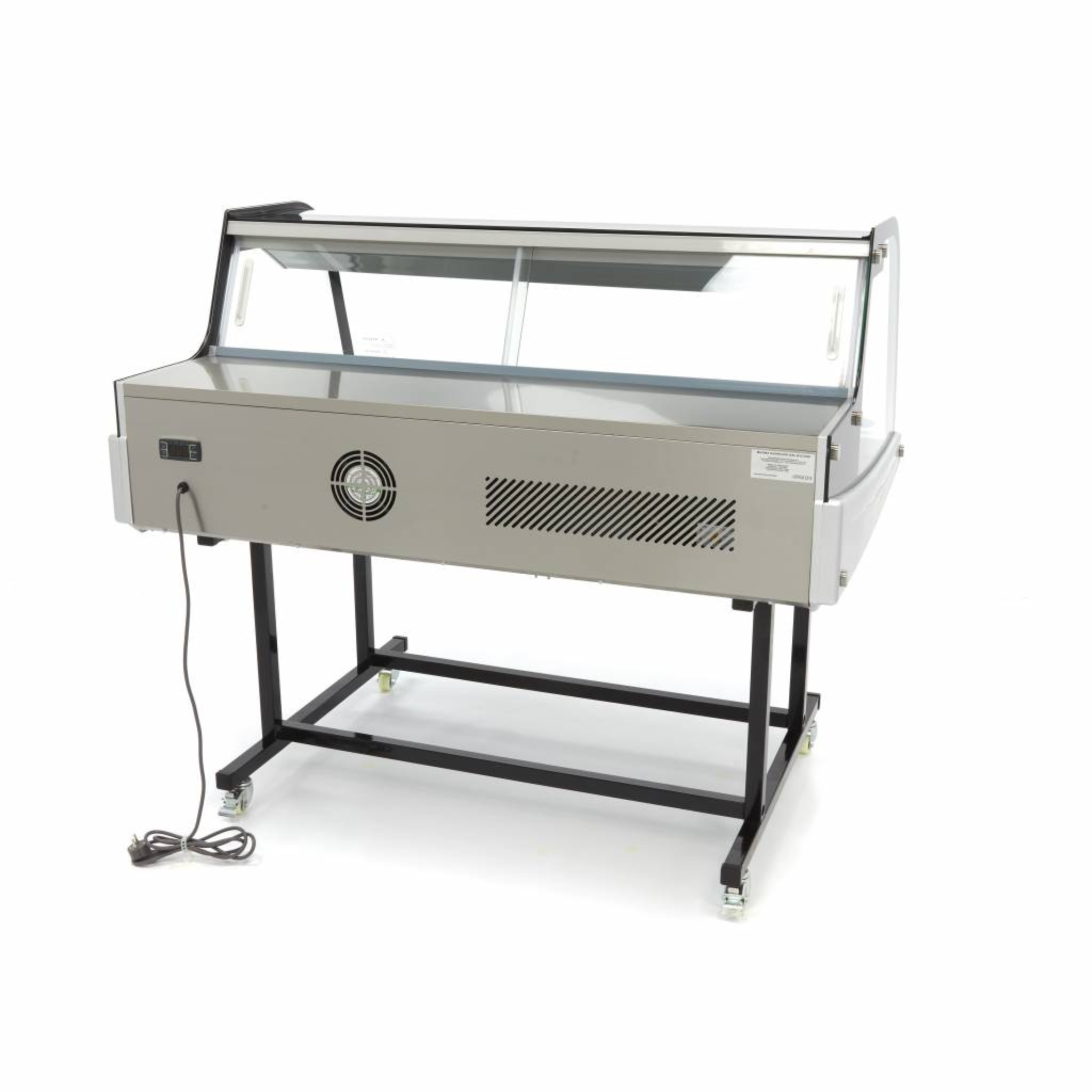 Het onderstel is voorzien van vier wielen en twee remmen. Om het onderstel uit het zicht te plaatsen, is het mogelijk om er een fraaie ombouw omheen te zetten. In de vitrine, aan de bovenkant, bevindt zich een ingebouwde en energiezuinige LED-verlichting. De temperatuur is eenvoudig aan te passen dankzij de digitale temperatuurregelaar. Met de knoppen en het display stel je nauwkeurig een gewenste temperatuur in tussen de 2° en +12° Celsius. Verder beschikt deze koelvitrine met onderstel over een unieke koelcyclus waardoor ijsvorming in de koeler wordt verminderd. Ook condens op de ruiten wordt aangepakt met de verdamper die condensatie opvangt in de daarvoor bestemde bak. Het koudemiddel dat gebruikt wordt voor deze koelvitrine met onderstel is R600a en is vrij van CFC.
