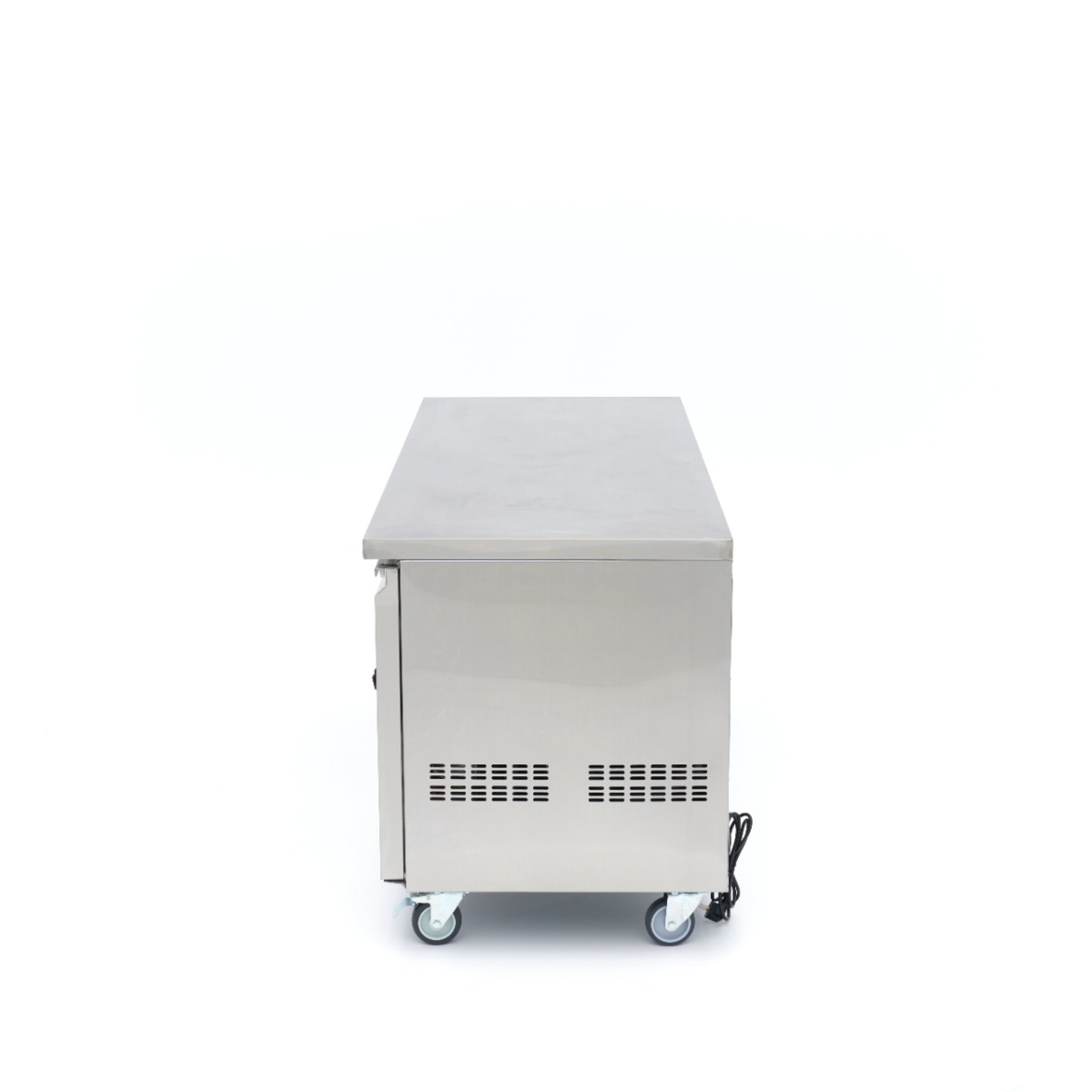 Deze koelwerkbank heeft een werkblad van 180 cm breed, ruim genoeg dus om je groenten te snijden of je gerechten mooi op te maken. Onder het werkblad bevinden zich drie glazen deuren met roosters en een compressorruimte met een krachtig koelsysteem.