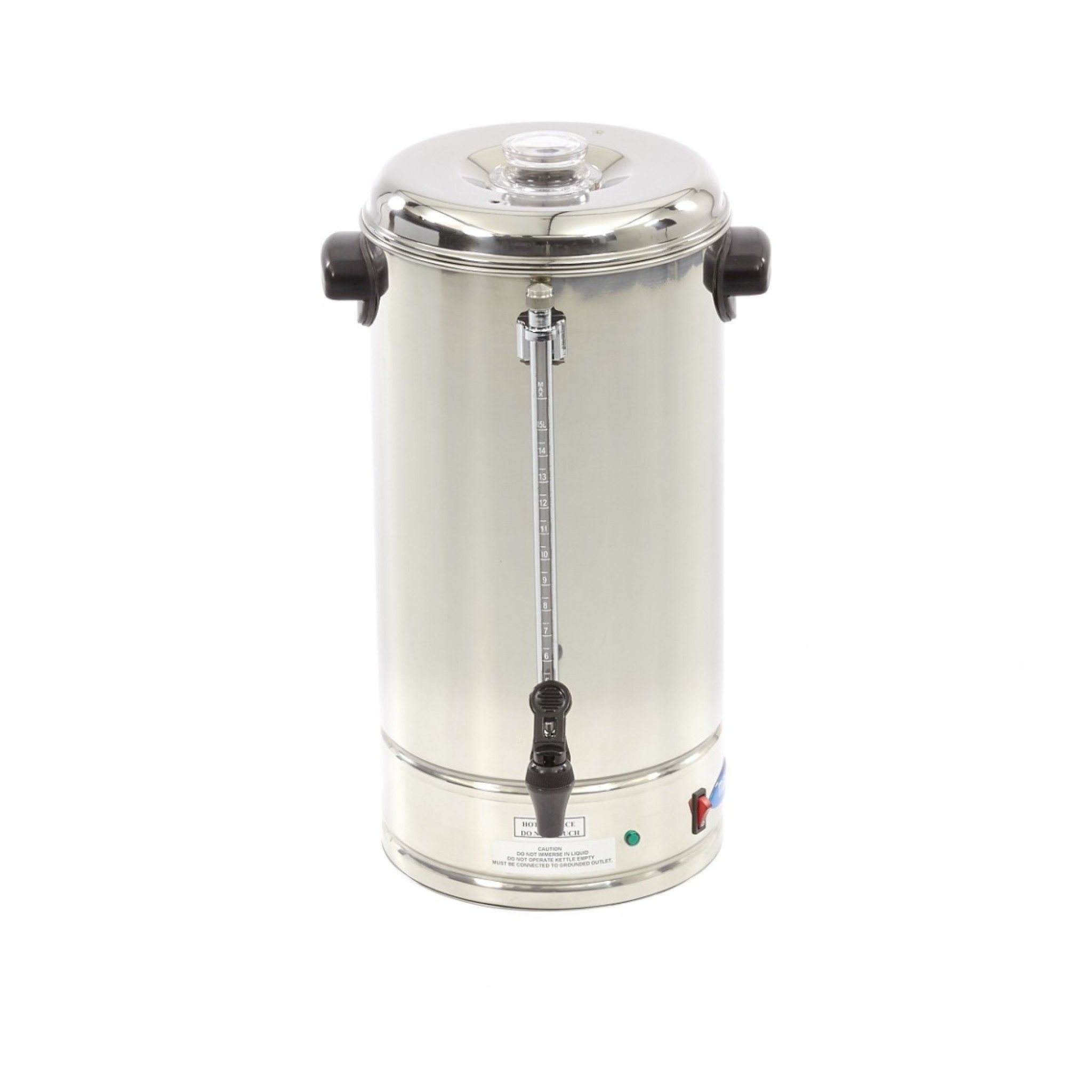 Deze roestvrijstalen koffie percolator heeft een inhoud van 15 liter, waarmee je ongeveer 120 kopjes koffie per uur kunt zetten. Bijkomend voordeel is dat je de koffie warm kunt houden in de koffie percolator, waardoor deze vers van smaak blijft. Op de voorzijde zit een peilglas die aangeeft hoeveel koffie er nog in de percolator zit. Met de handige tapkraan vul je de kopjes eenvoudig met koffie. De geïsoleerde handgrepen zorgen ervoor dat de handgrepen niet warm worden, waardoor je de koffie percolator makkelijk kunt verplaatsen als deze nog heet is. De deksel is gemaakt van kunststof en heeft een makkelijke dop om het deksel vast te pakken. De vier rubberen voeten zorgen ervoor dat de koffie percolator stevig staat en niet kan wegschuiven.