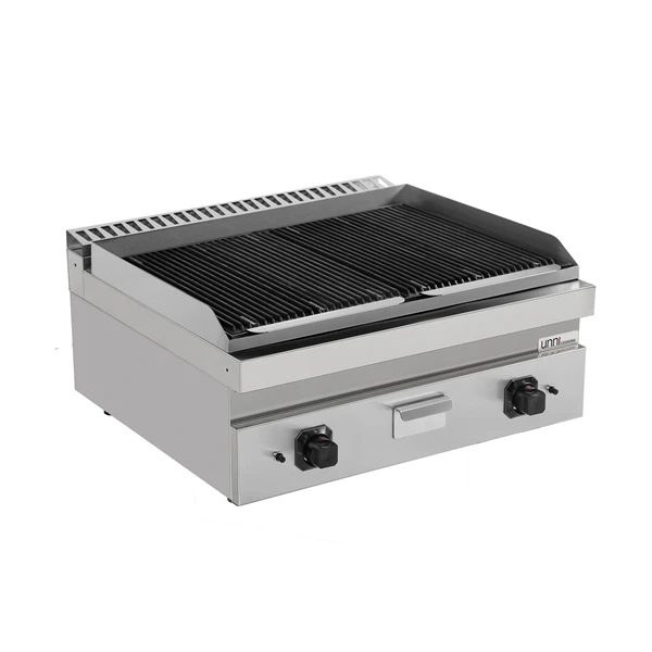Ontdek culinaire perfectie met de UnniCooking 700 LINE lavasteengrill, ideaal voor restaurants, cafés en professionele keukens. Met een krachtige roestvrijstalen brander, instelbare warmteregeling en authentieke lavastenen voor gelijkmatige warmteverdeling en heerlijke rokerige smaken. Betrouwbaar, duurzaam en ontworpen voor veelzijdig grillen van vlees, vis of groenten. Til uw gerechten naar een hoger niveau en maak elke keer indruk op uw gasten.