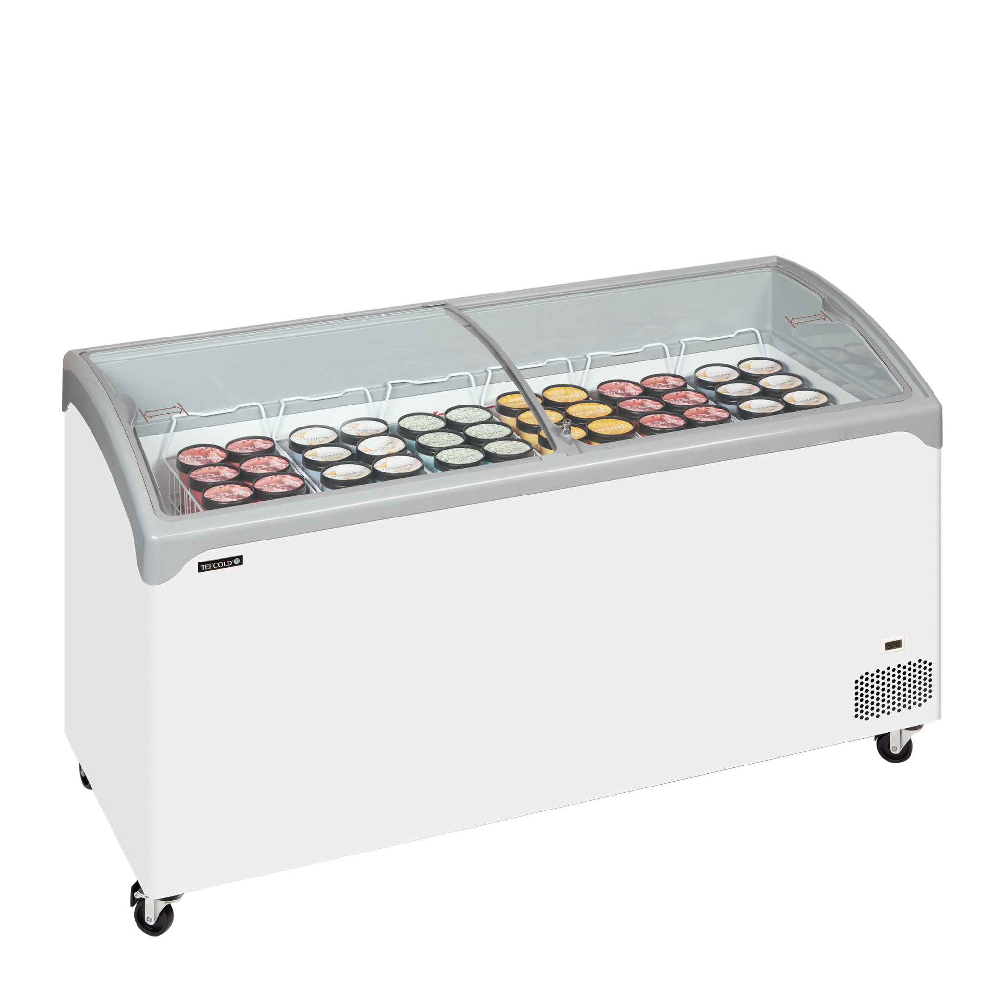+31 (0)226 411 540Tefcold | Elegante diepvrieskist met gebogen glazen schuifdeksels NIC501SCEB