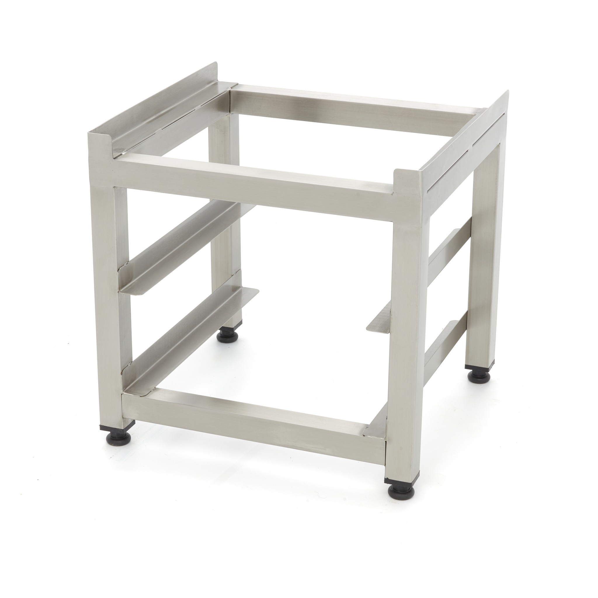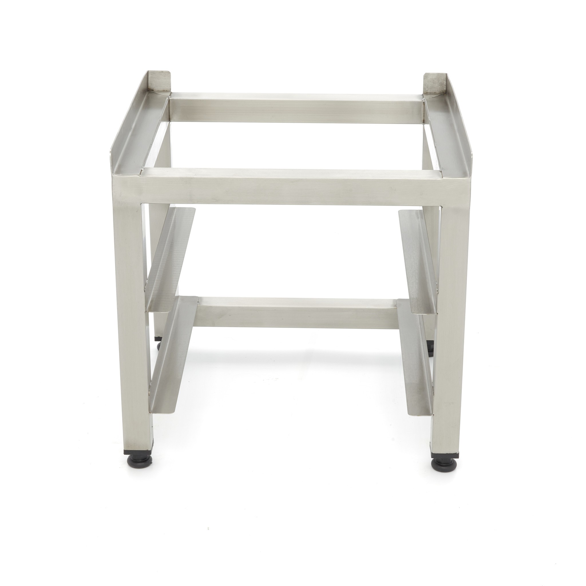 Het onderstel is gemaakt van RVS en de hoeknaden zijn dichtgelast en gepolijst. Aangezien het onderstel netjes is afgewerkt en er geen scherpe randen zijn, kun je veilig werken in de keuken. De poten van het onderstel zijn in hoogte verstelbaar zodat je zelf de juiste hoogte kunt kiezen. Het onderstel wordt als compleet gelast geleverd en hoeft niet in elkaar gezet te worden. Verder is het onderstel voorzien van twee sleuven zodat je er twee korven van 40 x 40 cm op kunt plaatsen.