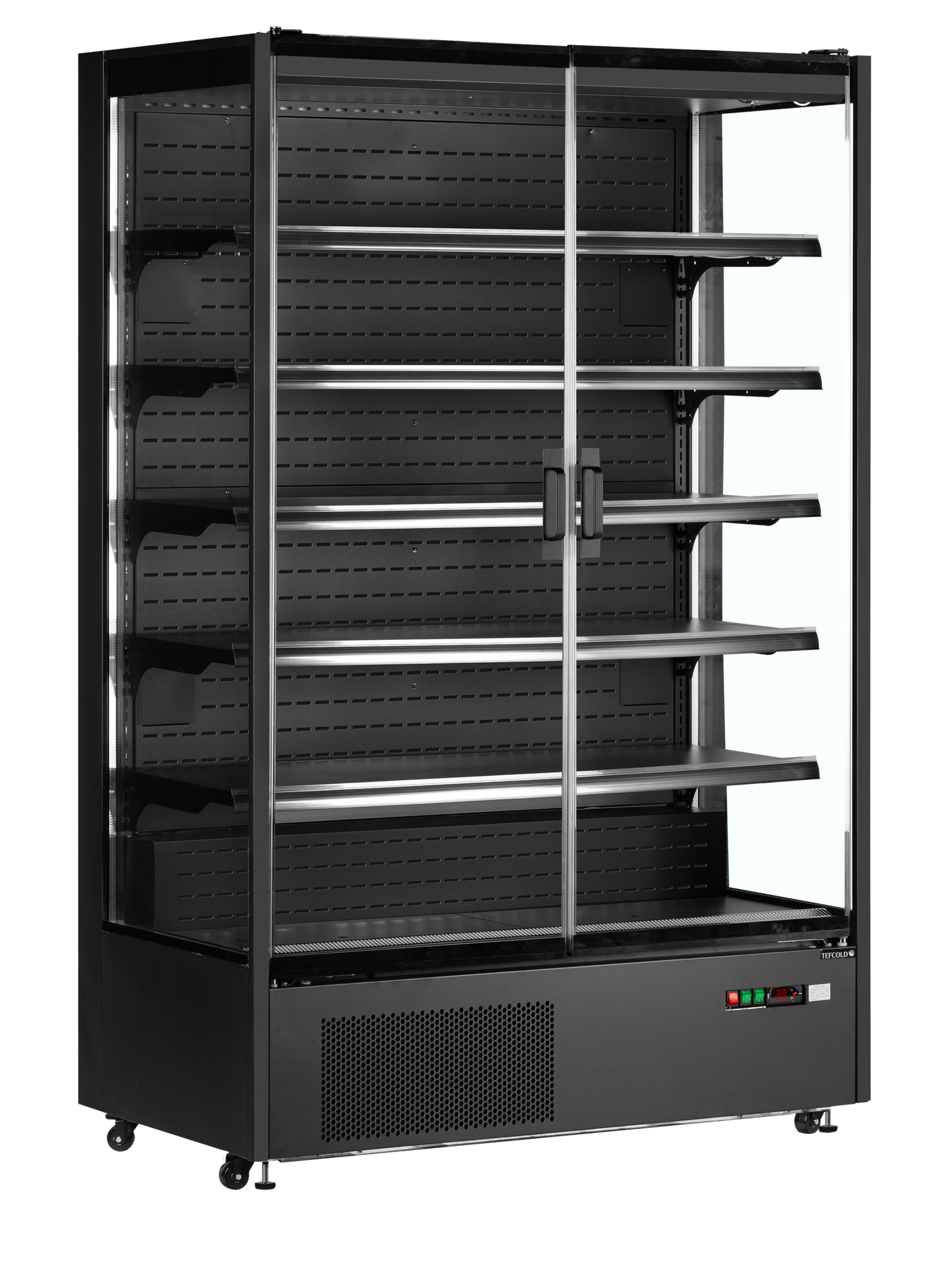 +31 (0)226 411 540Tefcold | Zwarte multideckkoeler met frameloze glazen deuren PC1250B