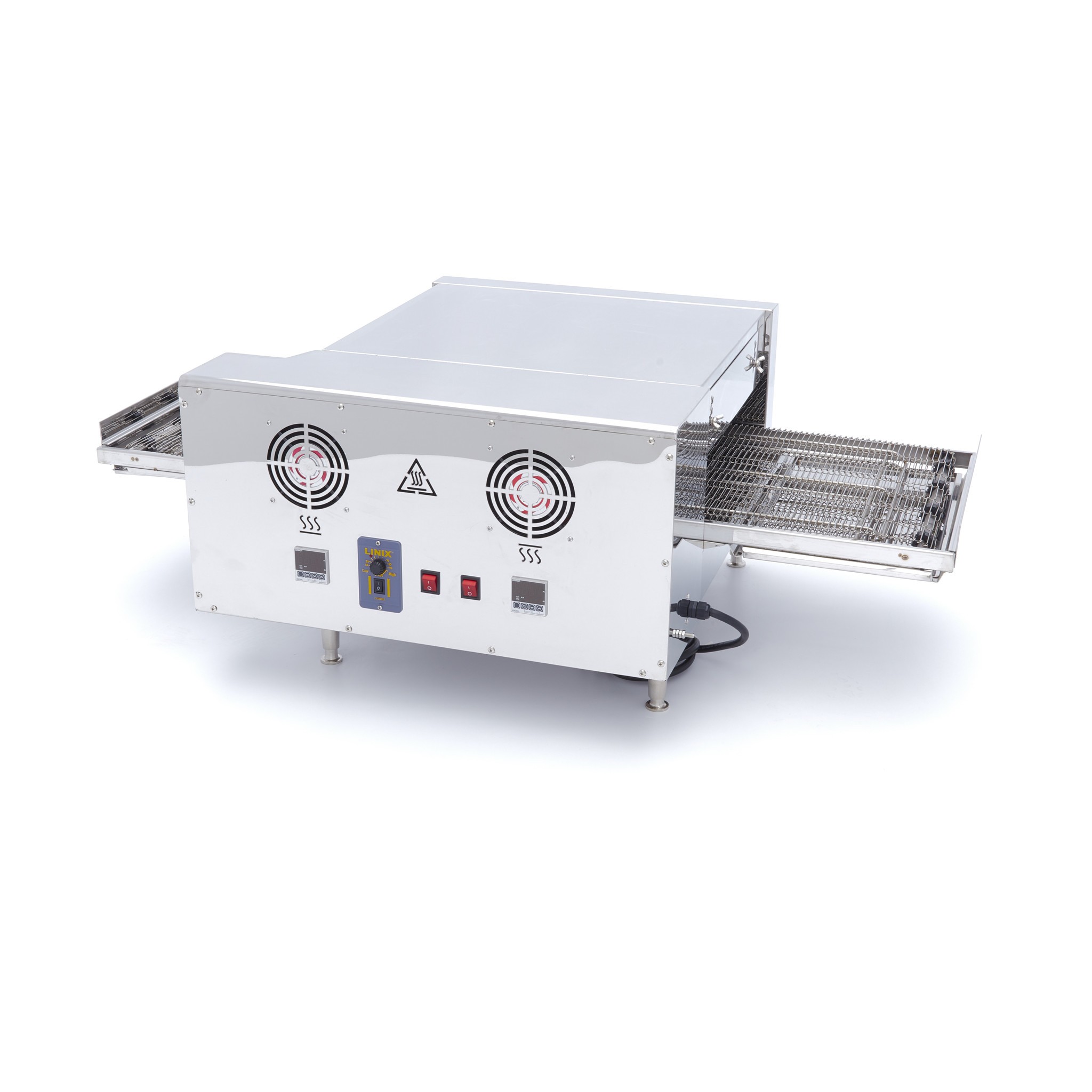 Op de transportband bakt deze pizzaoven maar liefst 30 pizza’s per uur. Dankzij de dubbele verhitting met elk een eigen digitaal display is de temperatuur eenvoudig in te stellen. Met de pijltjes selecteer je de gewenste temperatuur tussen de 50 en 280 graden Celsius.