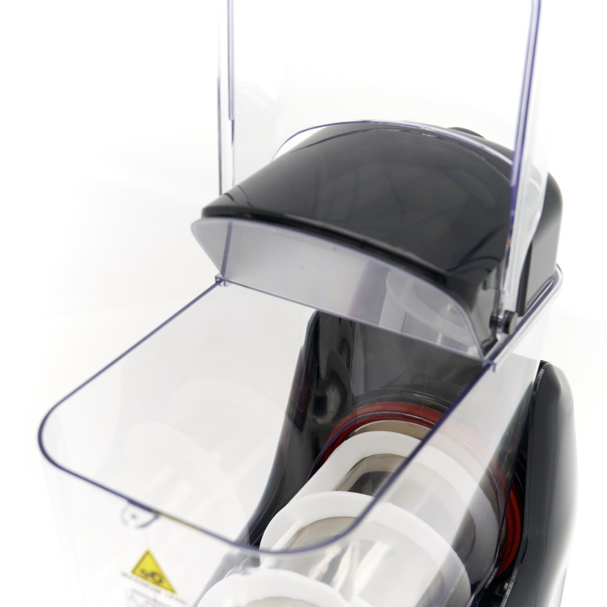 De slush machine is voorzien van een reinigingsprogramma. Maak de tank eerst leeg en vul de tank met schoon, warm water en een mild schoonmaakmiddel (blijf onder de max. streep). Selecteer het reinigingsprogramma op het display. De granita machine stopt nu met koelen en de roermechanisme blijft draaien. Hierdoor komt restvuil los. Daarna leeg je de tank en vul je deze opnieuw, maar nu alleen met warm water. Laat het roermechanisme draaien en leeg de tank opnieuw. Til de tank uit de machine en haal de tapkraan los. Draai het roermechanisme los, net als alle andere losse onderdelen. Reinig de losse onderdelen in een sopje. Het roermechanisme kun je afnemen met een vochtige doek. Droog de losse onderdelen goed af en smeer de rubbers in met wat voedselveilig vaseline. Zet de machine vervolgens in elkaar. Verwijder de lekbak en het filter en reinig deze ook. Daarna kan deze weer teruggeplaatst worden.