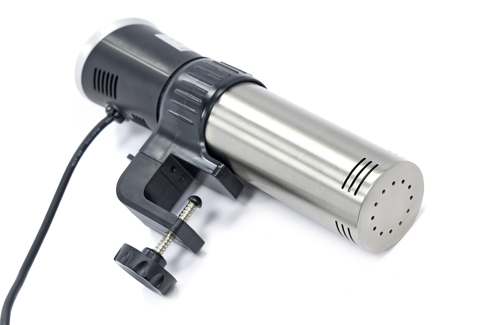 Deze sous vide stick plaats je in een waterreservoir of in een pan met een platte of ronde zijkant. Met de knop klem je de stick vast zodat deze niet meer kan bewegen. Daarna verwarmt de stick het water en kun je er vacuümverpakte etenswaren inleggen om sous vide te koken.