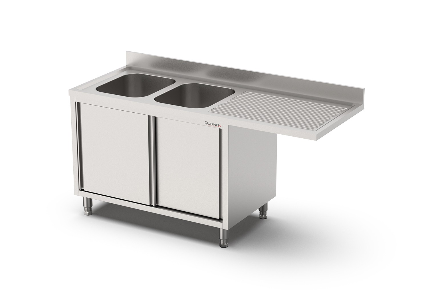 +31 (0)226 411 540Qusinox | Spoeltafel schuifdeur ruimte voor vaatwasser dubbele spoelbak links 1800x700