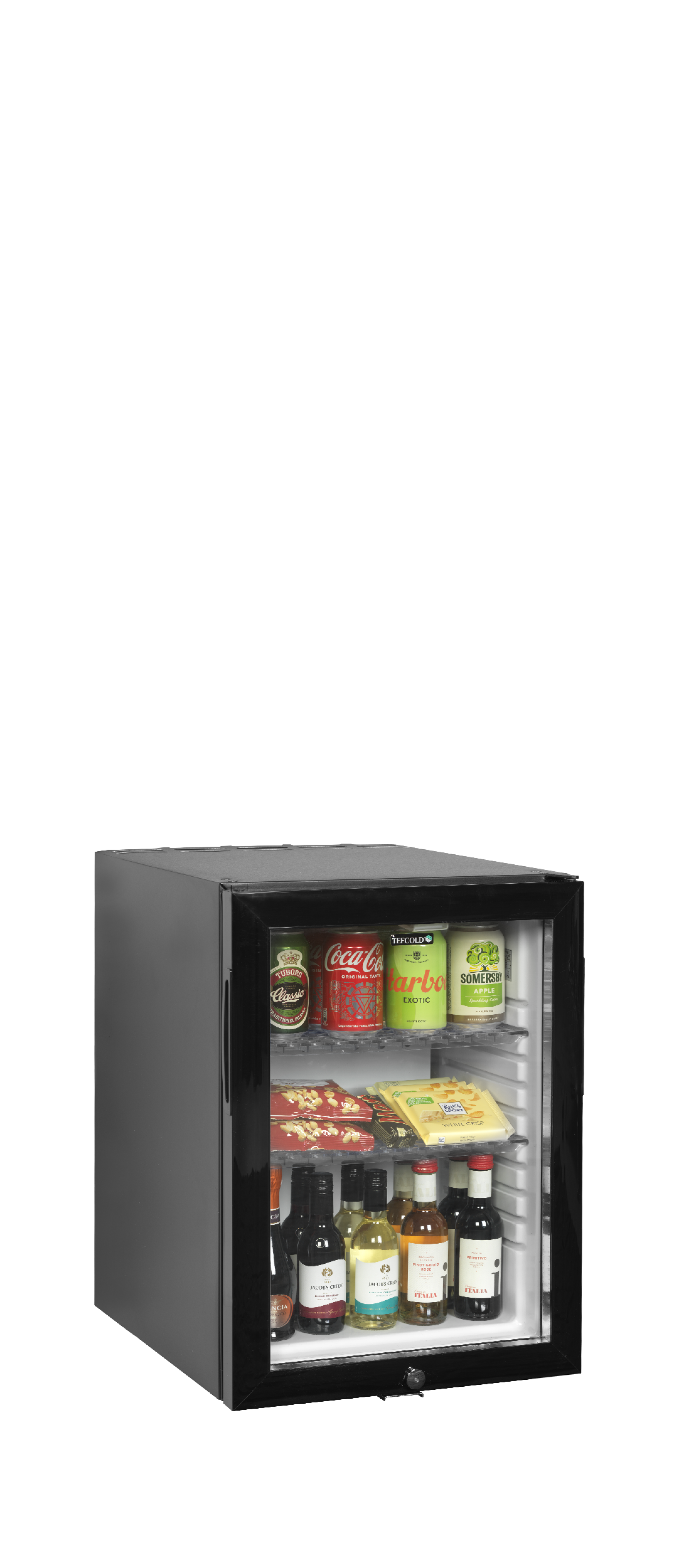 Minibar met glazen deur voor geweldige productpresentatie De TM-serie minibars met compressorbediening is een uitstekende keuze voor hotelkamers. Met een geluidsarm systeem dat kan worden getimed om alleen te draaien als de kamer waarschijnlijk leeg is. Ook met een SLEEP-modus voor geforceerde stilte en een FAST-cool-functie voor onmiddellijke koeling. Elegant ontwerp, gemakkelijk in te bouwen en met een zeer laag energieverbruik. Er zijn modellen in verschillende afmetingen met een dichte of glazen deur. Kenmerken: Koelsysteem met compressor • Uitstekende productpresentatie • Laag energieverbruik • Geluidsarme werking • Timer voor maximaal comfort voor gasten • SLEEP-modus voor stille periode • FAST-koelfunctie voor onmiddellijk koelen • Omkeerbare glazen deur • LED-binnenverlichting • Ingebouwde greep • Slot