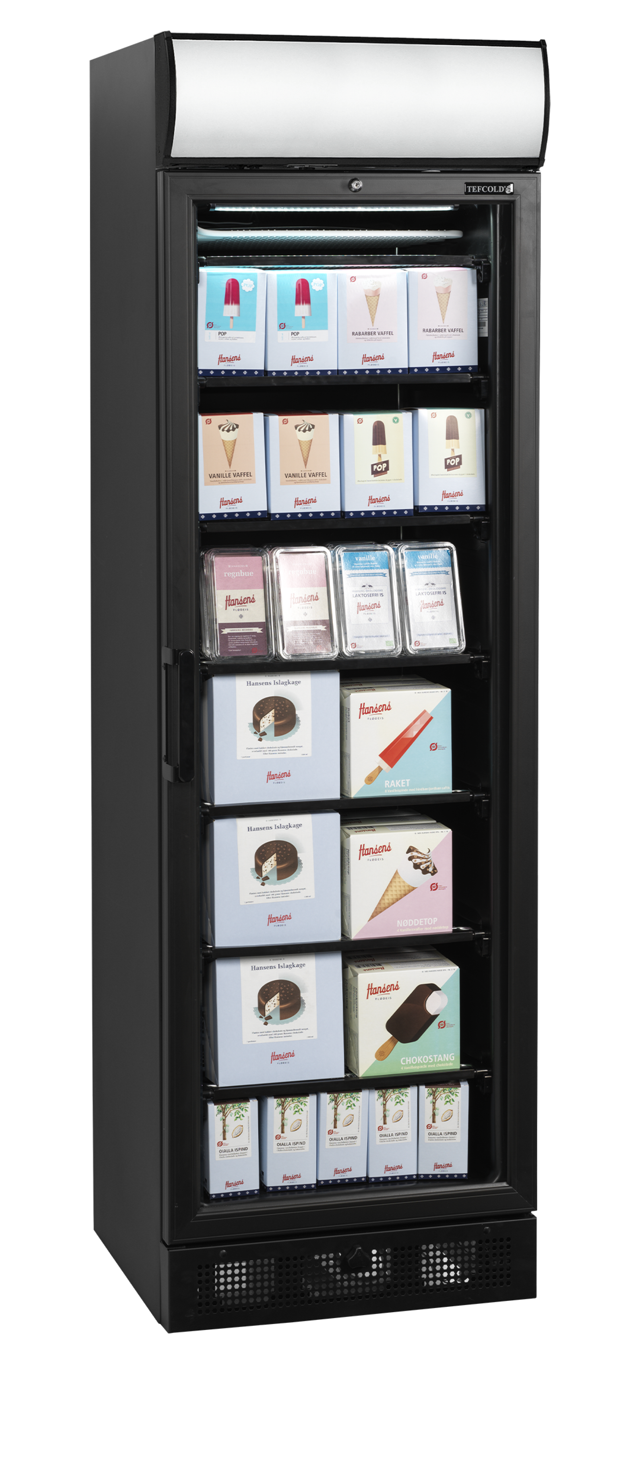 +31 (0)226 411 540Tefcold | Zwarte displayvriezer met kap en verwarmde glazen deur UFSC371GCP Black