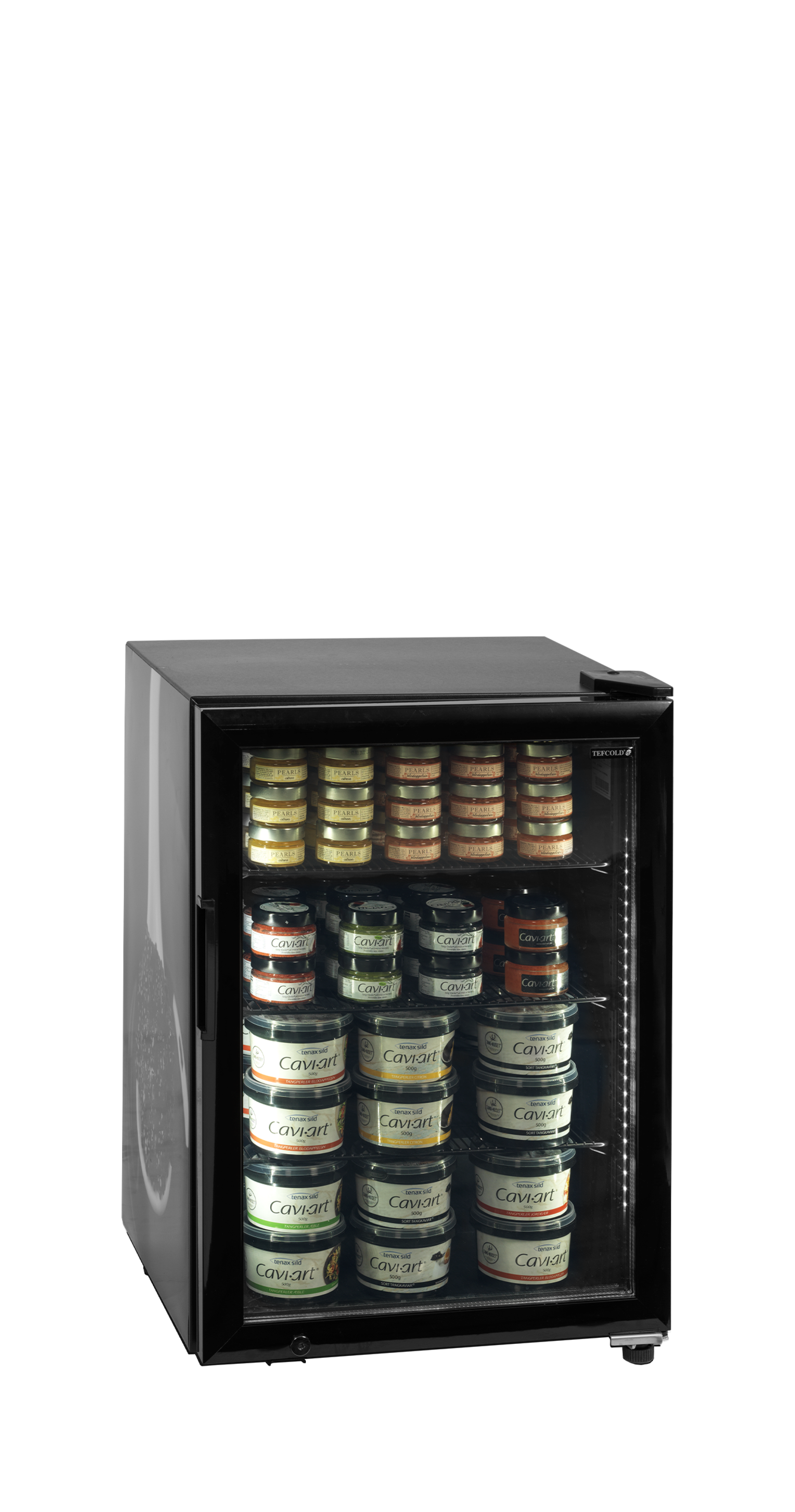 Sub zero tafelmodel vriezer ideaal als kaviaarkoeler The UR90G-SUB ZERO cooler is the perfect tabletop display cooler for caviar. It preserves the quality, taste, and texture of your caviar, as it can be set to the temperature range which caviar should ideally be stored at (-6 to 0°C). The ventilated cooling system ensures an even and stable temperature throughout the cabinet. Kenmerken: Interne verticale LED-verlichting • Zwarte binnen- en buitenkant • Uitstekende productpresentatie • Verwarmde glazen deur • Instelbare planken • Instelbare voet