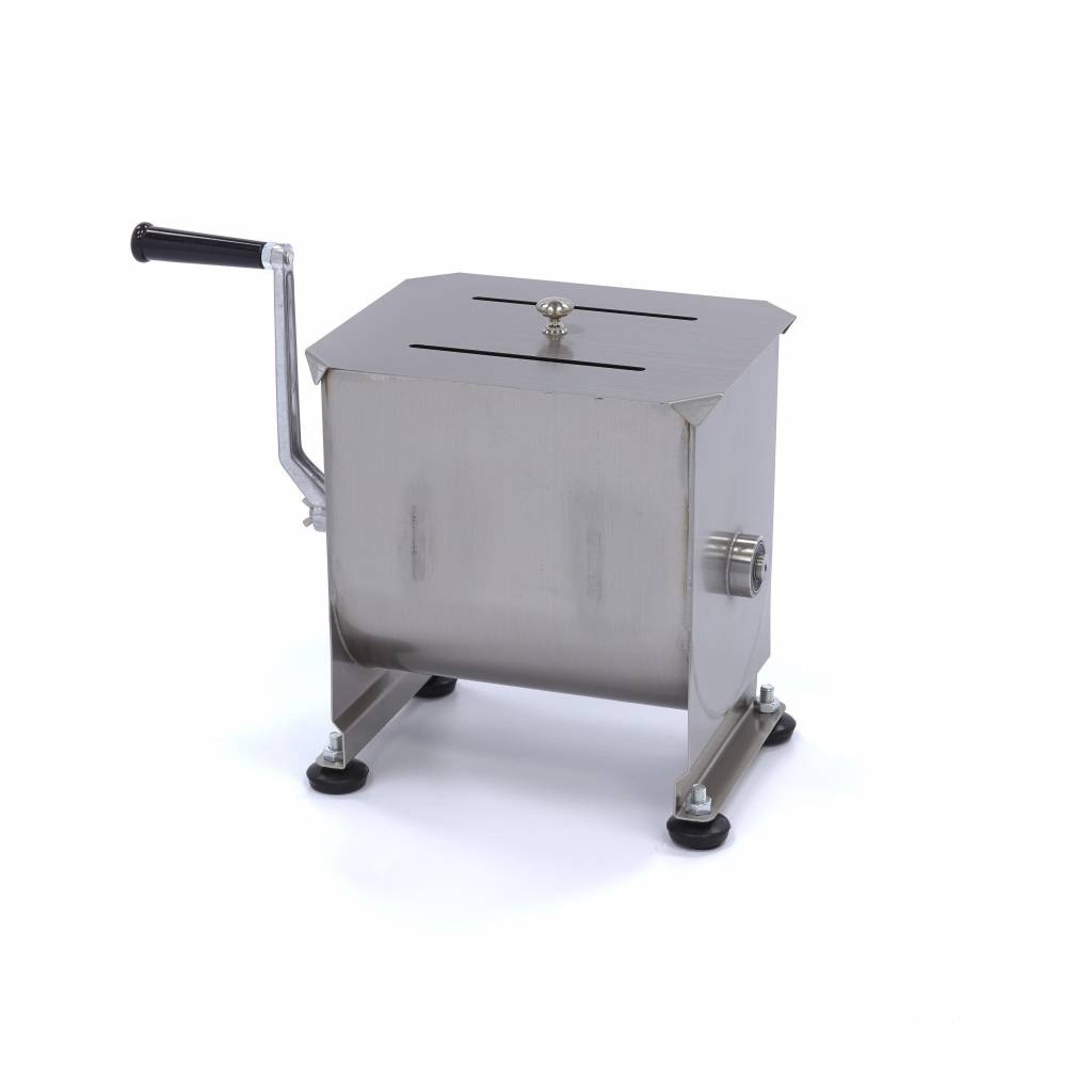 Met deze robuuste vleesmixer meng je letterlijk in een handomdraai vlees of vis met kruiden en andere ingrediënten. Zeker als je dagelijks werkt met vullingen, hamburgers, worsten of visgerechten dan is deze vleesmenger een welkome aanvulling in de professionele keuken. De vleesmenger is handmatig te bedienen dankzij de duurzame en robuuste draaihendel.