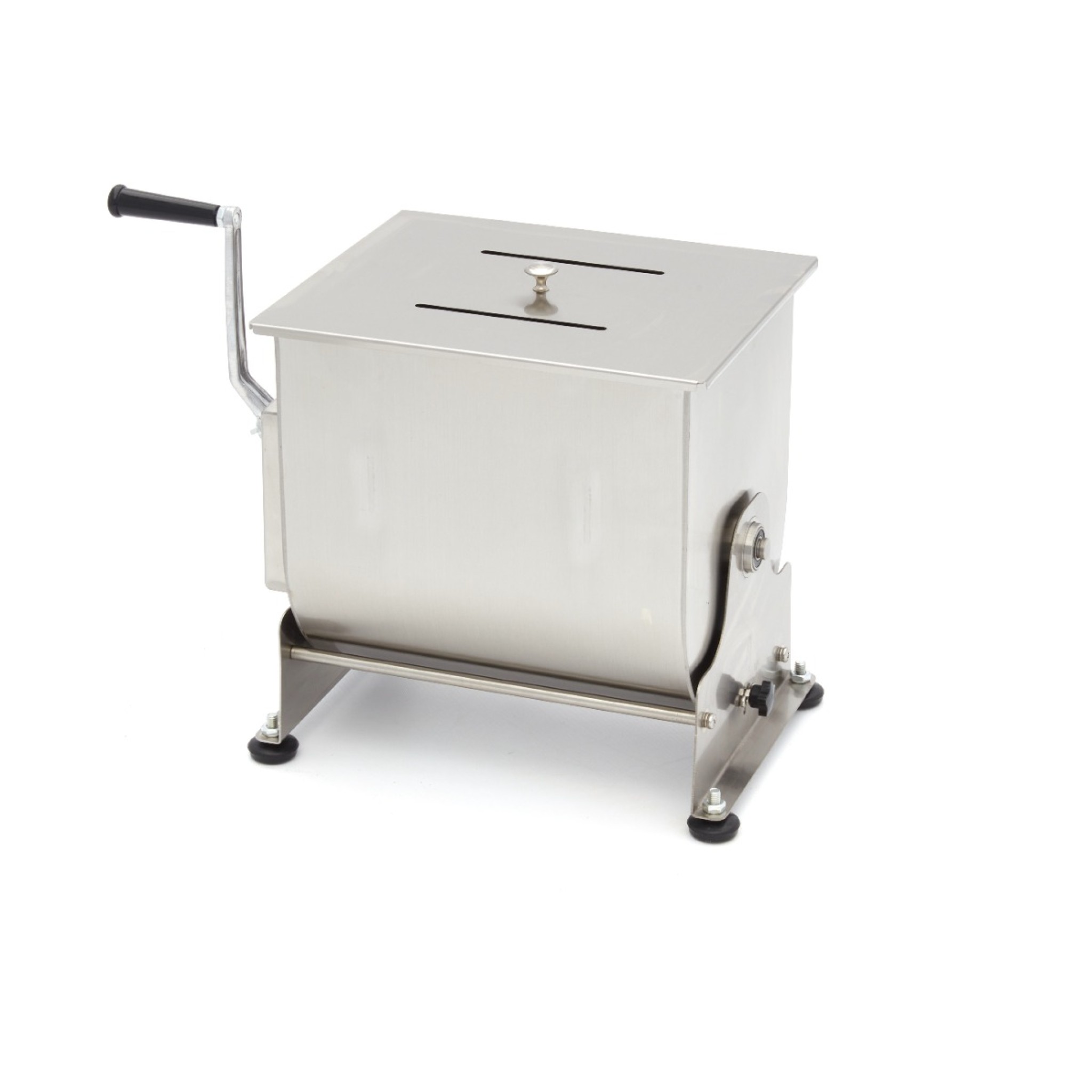 Vlees mengen in deze rvs vleesmixer is erg gemakkelijk: je opent de deksel en vult het reservoir met de gewenste hoeveelheid vlees of vis. Het reservoir heeft een inhoud van 30 liter en is geschikt voor het verwerken van 20 tot 25 kg vlees of vis, afhankelijk van de structuur van het vlees.