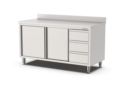 +31 (0)226 411 540Qusinox | Werktafel schuifdeuren met laden (R) + rand Afm. 1600x700xH900 mm